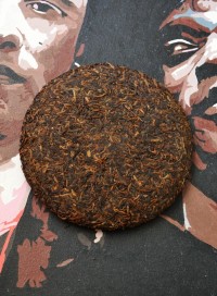 200-граммовый блинчик, достаточно плотный, легко разбирается руками. Цвет от красно-коричневого, до чёрного, с золотистыми вкраплениями (почки). Аромат зрелый, полный, древесно-ореховый. Без каких-либо следов водуя. Этого удалось добиться за счёт того, что после прессовки блинчики вылёживались полтора месяца, прежде чем попали в упаковку. Настой чистый, насыщенного тёмно-каштанового (почти чёрного) оттенка.