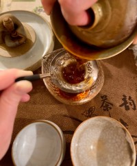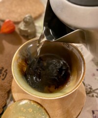 Готовый настой раскрывается медленно, как молитва, в которой каждый глоток — откровение. Сначала — мягкое, чуть сладковатое прикосновение. Затем — глубокий, бархатистый вкус с древесно-ореховыми оттенками, как старая библиотека, пахнущая временем и смыслом. И наконец — послевкусие, которое длится, словно затянутая мелодия старого буддийского хора. Оно тёплое, ровное, чистое. Именно так и должен звучать настоящий выдержанный шу пуэр.