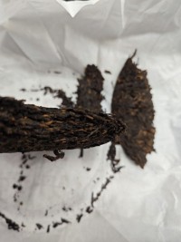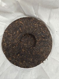 Внешний вид чая – небольшая, рыхлая лепешка весом 200 гр., обильно усыпанная чайными почками. Прессовка достаточно мягкая, упругая, без труда разбирающаяся руками. На разломе однородное, чистое, ароматное сырье без посторонних артефактов. Мягкость, и выразительность в совокупности с древесно-ореховой гаммой и нюансами шоколада – прекрасны.