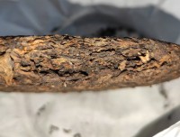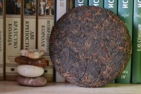 Внешний вид чая – рыхлая, аккуратная лепешка, весом 200 гр. Прессовка мягкая на столько, что буквально рассыпается в руках на маленькие, однородные жгутики бурых и золотистых оттенков. На разломе блин чист, красив и аккуратен, без посторонних предметов и прочих артефактов. Аромат сухого чая тихий, мягкий, объемный, древесно-пряный, с нюансами камфары и орехов.