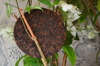 Внешний вид чая – небольшого размера, аккуратный блинчик, весом 200 гр. Красивое, фактурное, хорошо и мягко спрессованное сырье. На разломе однородное и чистое, с обилием чайных почек. Аромат сухого чая мягкий, деликатный, чистый, пряно-ореховый, древесный, чуть сладковатый. Отлично настраивает на неспешное чаепитие с вниманием к нюансам и деталям.