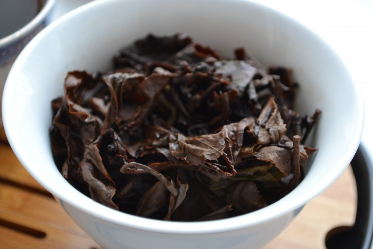 Прогретый чай имеет коньячно-винный аромат, с вкраплением запаха влажных древесных опилок. Очень схож с ароматом хэй ча из Гуанси.